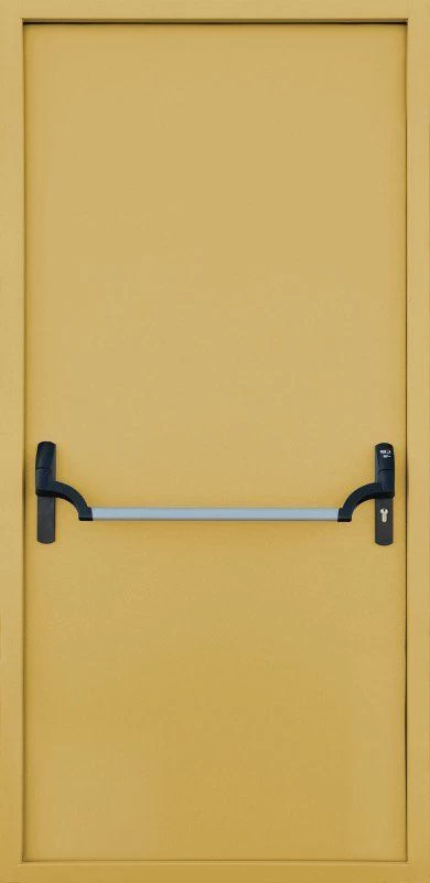 Внутреннее наполнение этой двери делают из негорючего материала с низкой теплопроводностью, поскольку при возникновении чрезвычайной ситуации сами двери и ручки не должны нагреваться, пропускать в соседние помещения продукты горения и сами их выделять. Для этого по периметру противопожарной двери прокладывается утеплитель, а между дверной коробкой и дверью крепится термоуплотнительная лента, которая при нагревании вспучивается и заполняет малейшие щели, не давая дыму проникнуть внутрь помещения. Противопожарные двери должны легко открываться простым нажатием ручки, с открытием такой двери должен легко справиться и ребенок, и пожилой человек.