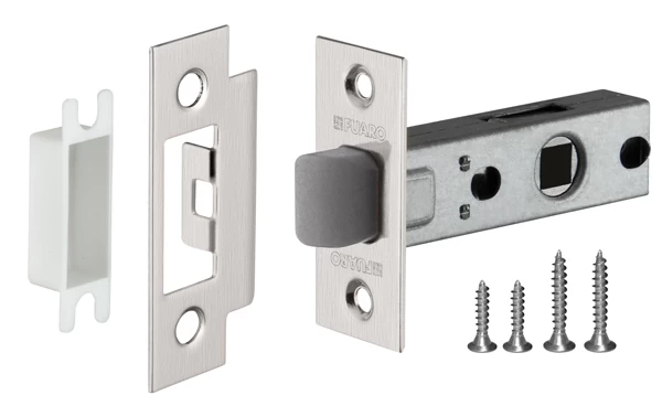 Дверная защелка с пластиковым механизмом Fuaro P12 серии PLASTIC изготовлена в соответствии с требованиями ГОСТ 5089-2003. Предназначена для установки в деревянные межкомнатные двери. Корпус выполнен из стали с надежным гальваническим покрытием. Защелка легко устанавливается, подходит для дверей левого и правого открывания. Ударопрочный пластиковый механизм обеспечивает бесшумность работы защелки. Защелка P12 с усиленной пружиной имеет высший 4 класс надежности (250 000 циклов открывания/закрывания). Отверстия под стяжные винты находятся на расстоянии 37-41 мм. Размер бэксета - 45 мм. Возможна установка дверных ручек на стяжные винты для более прочного крепления. Цвет: матовый никель. В комплектацию входят: ответная планка с декоративной вставкой и крепежная фурнитура в цвет изделия.