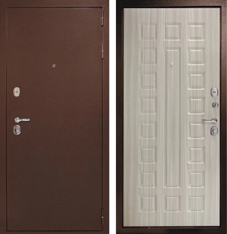 Надежная входная Дверь Рубикон 1 Медь Сандал белый премиум класса по цене 32 219 руб. Большая толщина стали защитит от проникновения в ваш дом, квартиру или коттедж. Используется очень качественная фурнитура: замки, цилиндры, ручки, защелки. Покрытие и отделка двери изготовлено под внимательным контролем производителя. Дверь имеет долгий срок службы и гарантию.