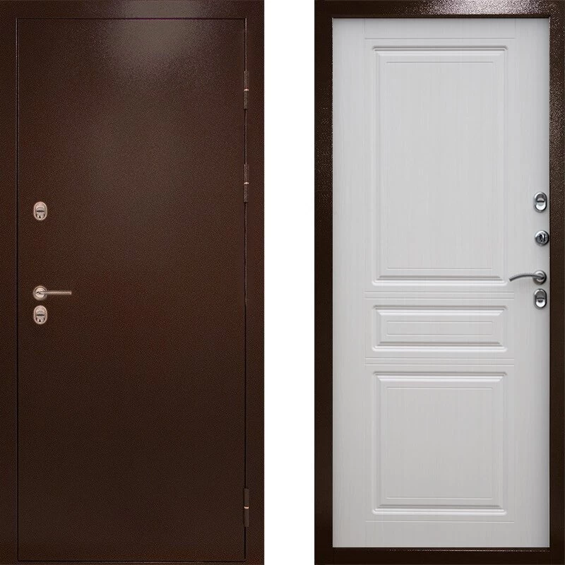 Надежная входная Дверь Термо Доор Сибирь термо медный антик премиум класса по цене 44 699 руб. Большая толщина стали защитит от проникновения в ваш дом, квартиру или коттедж. Используется очень качественная фурнитура: замки, цилиндры, ручки, защелки. Покрытие и отделка двери изготовлено под внимательным контролем производителя. Дверь имеет долгий срок службы и гарантию.